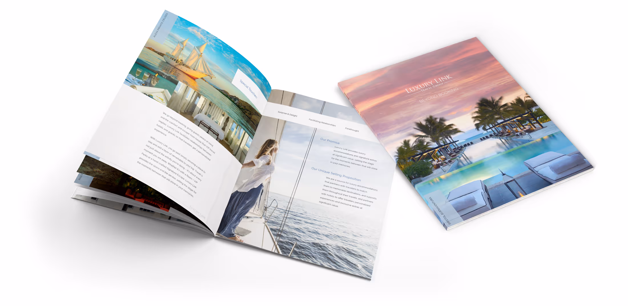 After repositioning the Luxury Link brand and clarifying what it stood for and why, establishing a color scheme and design language, the entire brand bible had to be committed to print for dissemination and codification. This became an internal editorial work that launched Luxury Link’s in-house magazine, “Lifestyle”.